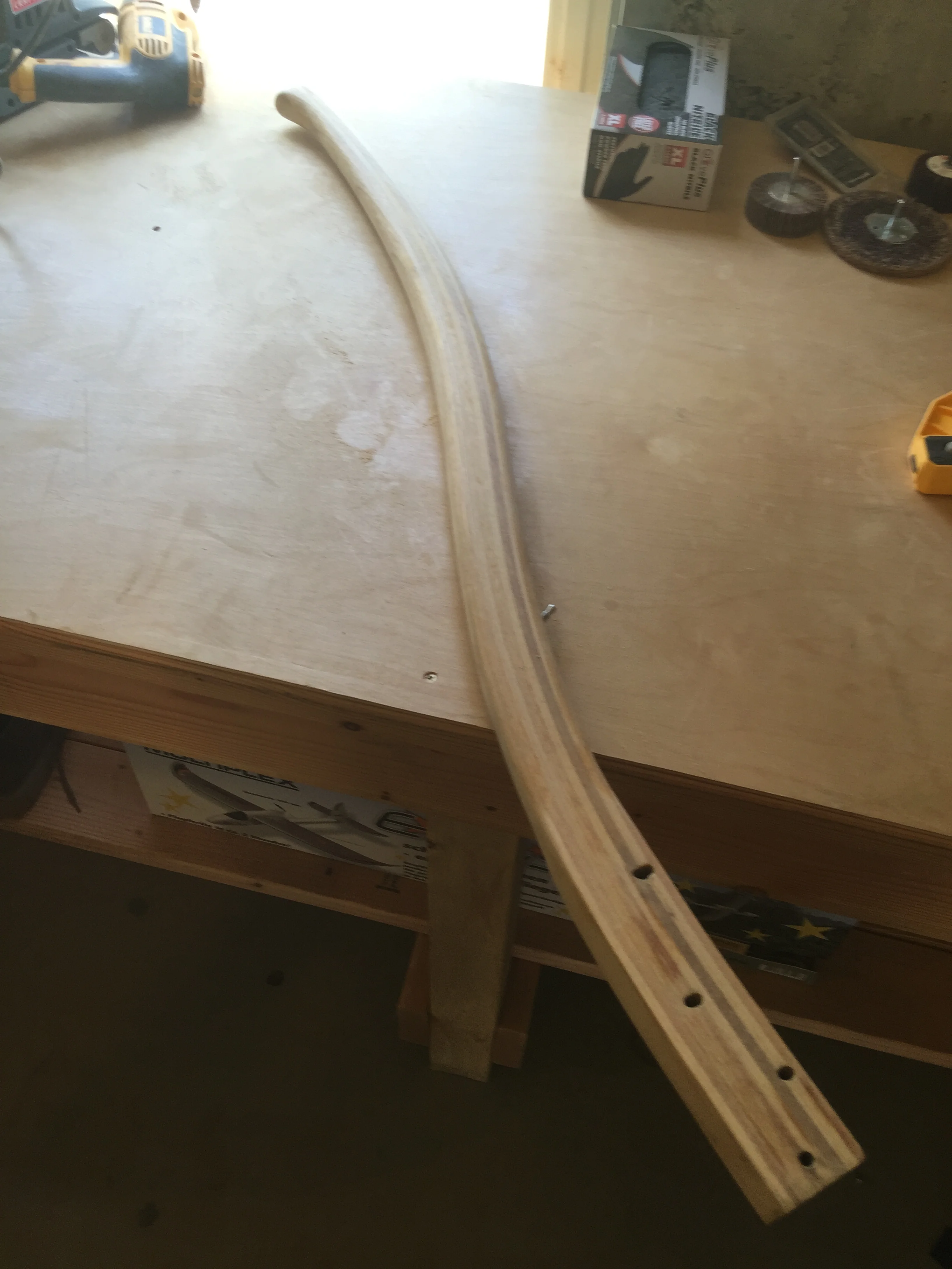 After this successful first session I felt up for something more challenging; the helm. The helm was not in bad shape, but it was mostly rounded edges and did suffer some dings and scuff marks so I had to sand all that smooth. The circular sander had obvious some problems with all these rounded edges so i resorted to the "flappy sanding discs" I picked up from Ace Hardware. I did not actually get the DeWalt versions but there are better pictures for those. I am getting those through Amazon as well now though.